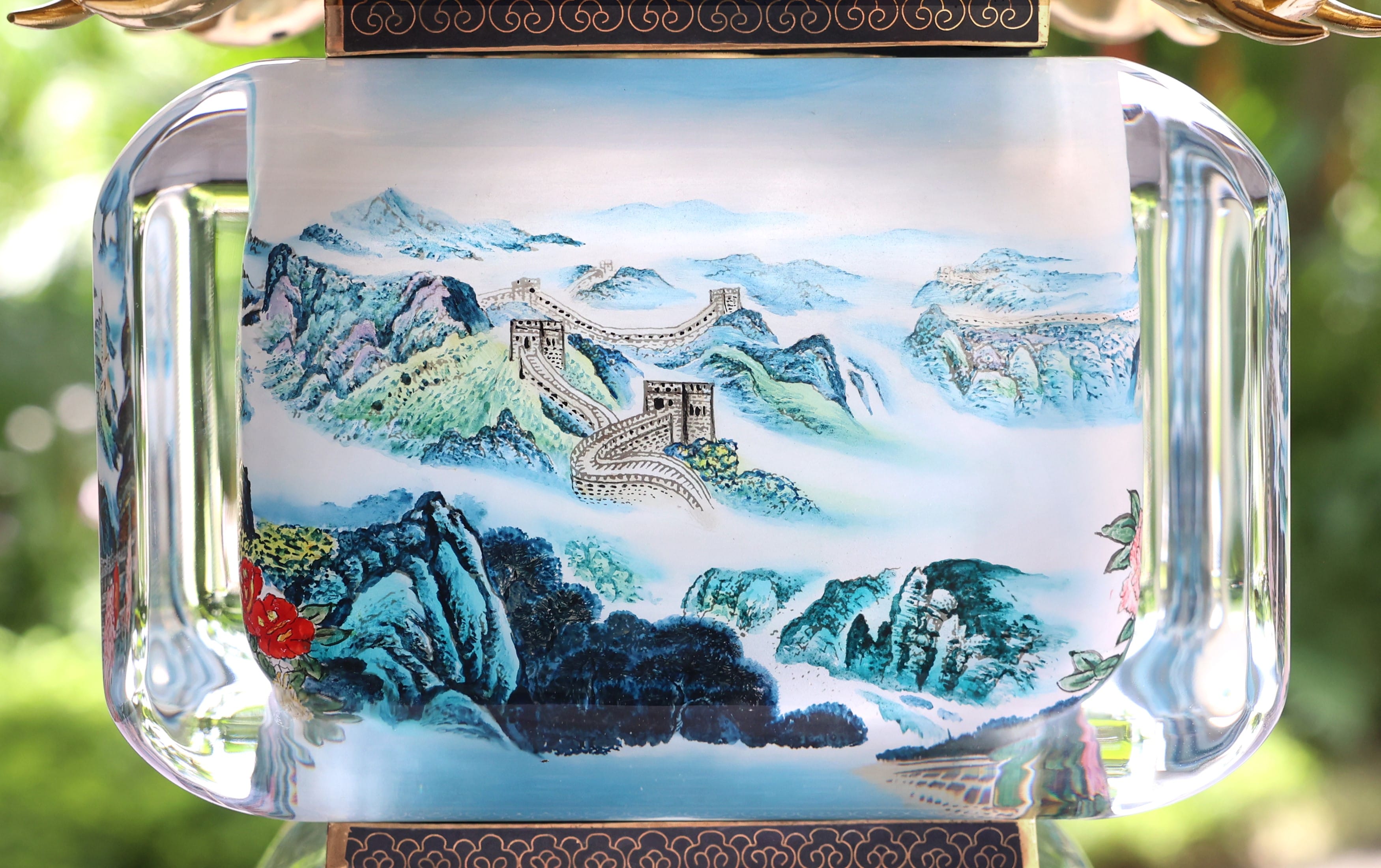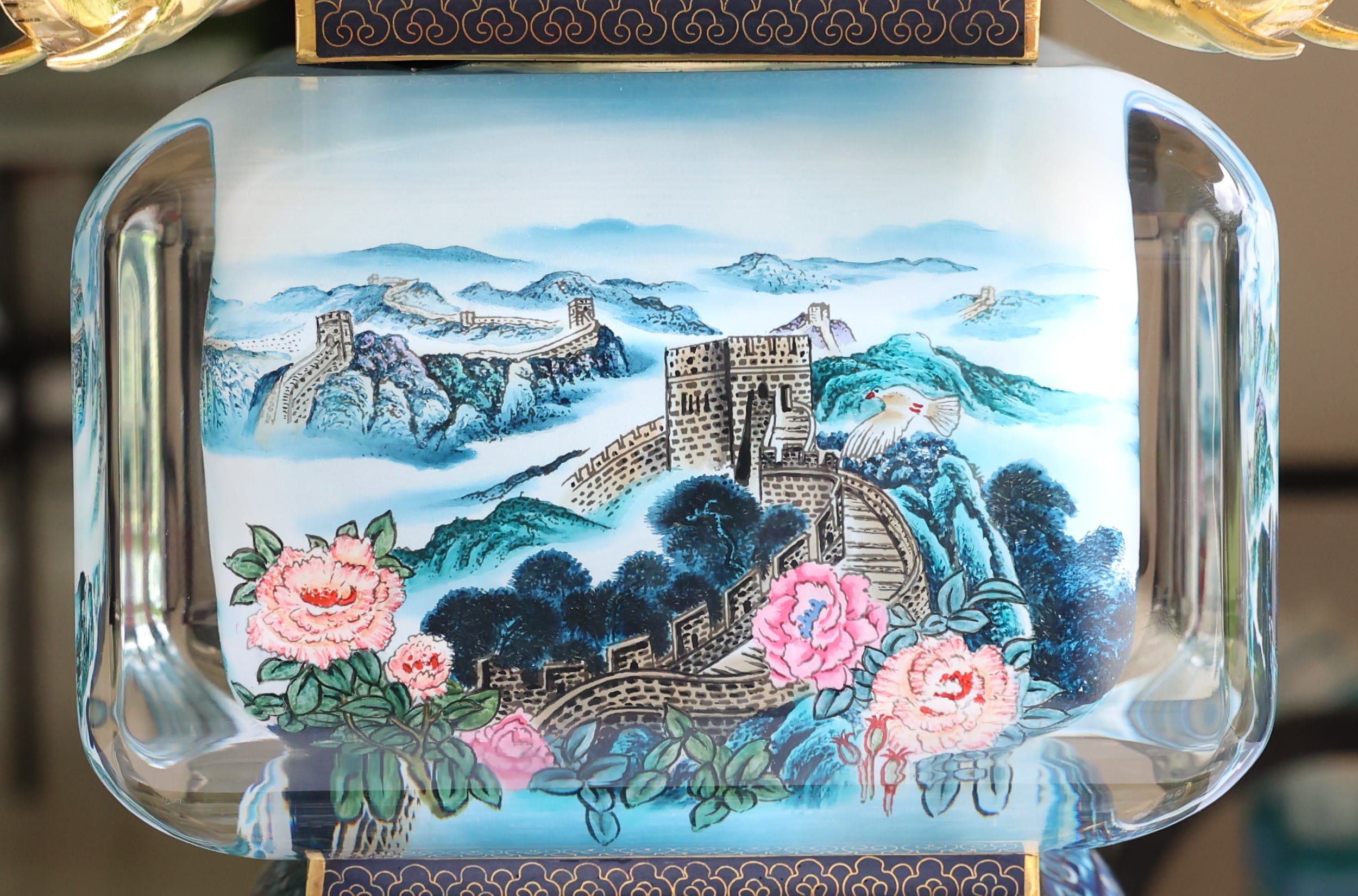 The interior paintings depict the Temple of Heavens, the Great Wall, blossoming peonies, Chinese roses, and chrysanthemums – motifs that symbolise prosperity and good fortune.