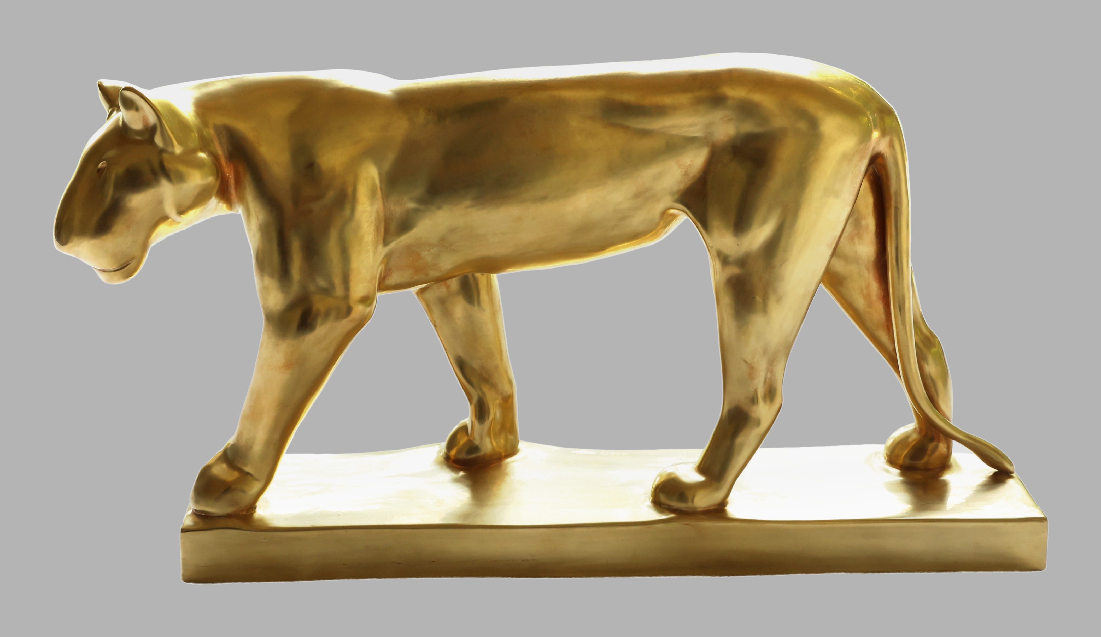 This gift is a golden sculpture of a Schreitende Lowin, or striding lioness – a replica of an early work by the late German sculptor, Gerhard Marcks.